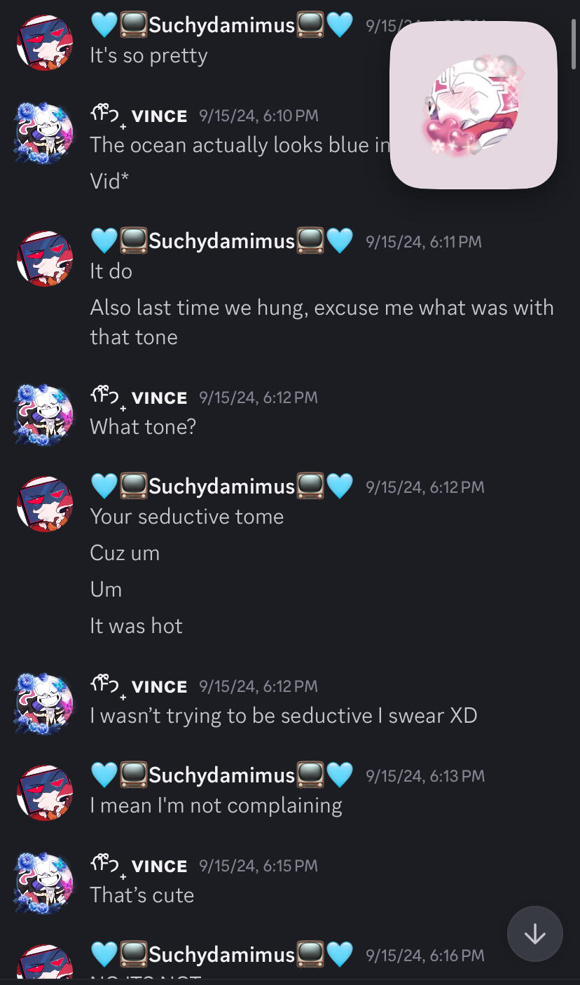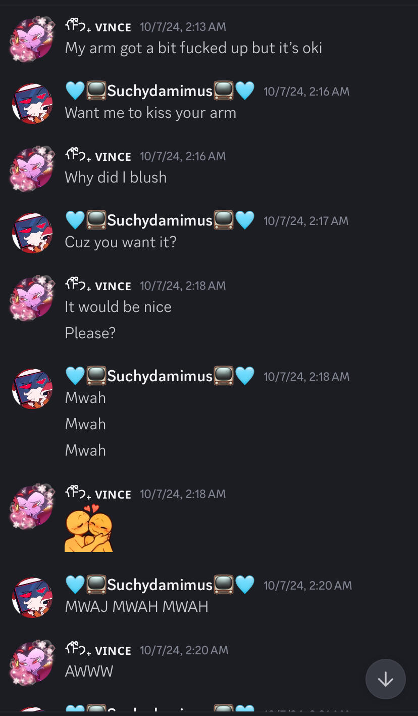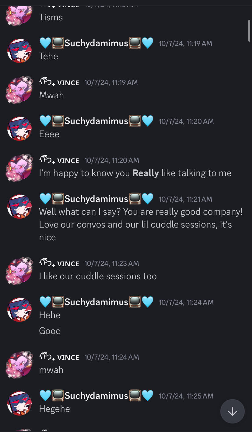 From then we’d grow closer and closer and hang out almost on a daily for a month straight, he was made aware of my age at the start of our friendship, I told him I had very recently turned 18 when I first met him in VRchat, Our hang-outs were daily and we’d cuddle and talk about life, our issues, people who bothered us, our plans, etc. slowly though hed began to talk about relationships and open up about his real life issues, and I listened and tried to give him advice. I began to develop feelings for him. And he knew that, so he sat me down and told me to take things slow and I listened, it did hurt my feelings of course so I tried to distance myself to let go of them but he’d text me every single morning and our hang-outs never really stopped, the more we’d have our “cuddle sessions” the more brave we both sort of behaved, he’d touch my hips or kiss at my neck or forehead and occasionally bite me, of course I’d do the same thing, kissing and biting. I’ll admit, I acted immature with him, very immature. That’s no excuse for any of my behavior. Shortly after he told me to tone it down he immediately told me in vr to not stop, he liked the attention, I felt special, I felt like someone as cool as him could like someone like me, while no I no longer feel that way I was in a very bad bad headspace at the time due to an ex.
