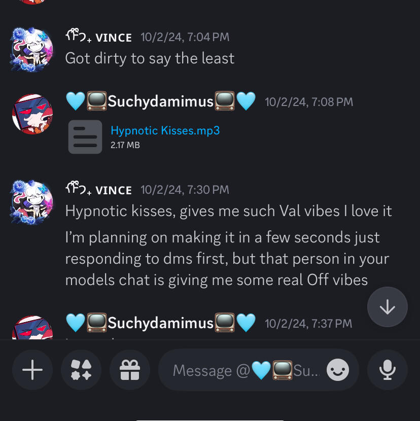 I met suchy a week or two after I turned 18, I was to shy to say hello because I was a fan and was nervous because I idolized him, I did eventually began speaking with him though and we got along well, we’d hang out and talk and I tried to be nice to his friend group, But I quickly began to feel unwanted by other members, I’d sort of keep to myself, not because I felt judged but because I can’t hold or keep a conversation going, I’m not a social person. I brought one of my now exes around him and used a tone that he seemed really really fond of he called it my “seductive tone”